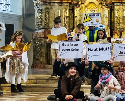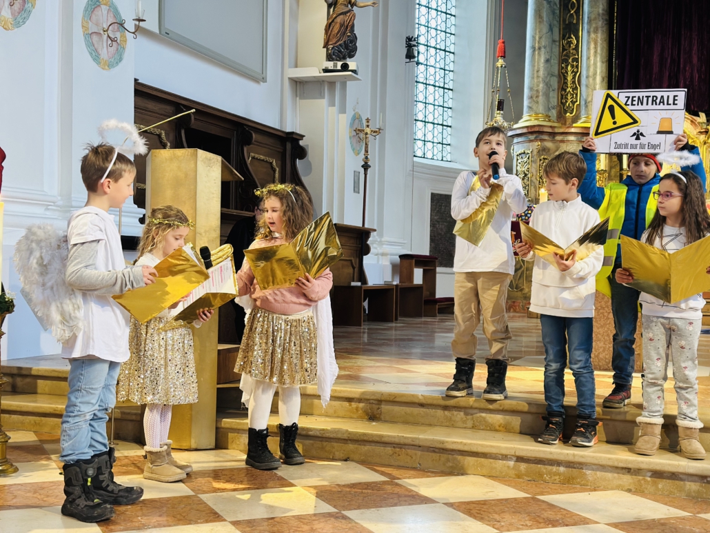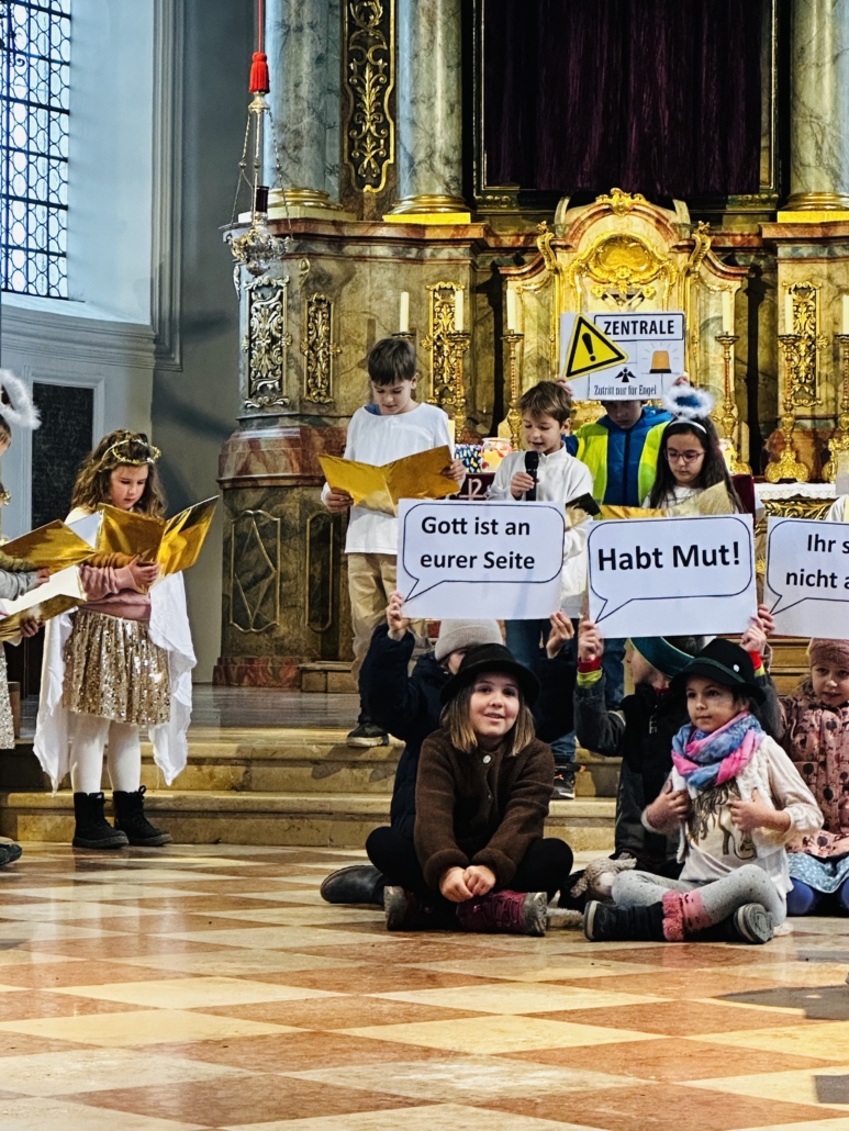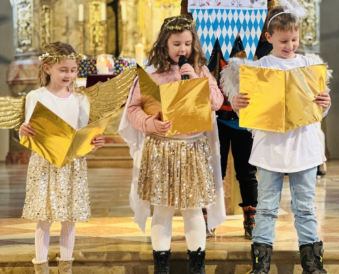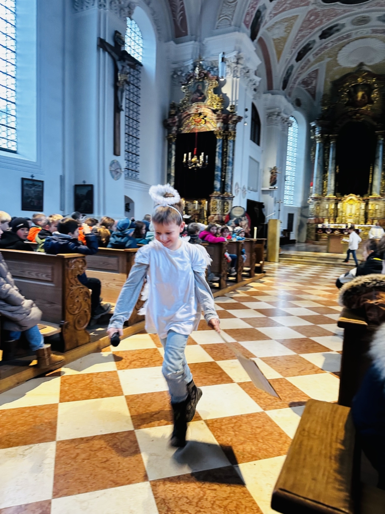 Am Mittwoch den 17.12. fand unser alljährlicher Adventsgottesdienst mit allen Schülern, Lehrern und einigen Eltern der Schule Au statt. Unter dem diesjährigen Thema „Die Schutzengel von Au“ 👼🏼 leiteten uns Pater John und Pfarrer Kauffmann durch eine besinnliche aber auch lustige Andacht. Musikalisch wurden wir von Frau Mayer und Frau Rauscher auf der Gitarre begleitet. Außerdem erfreute uns die 2b mit einem tollen Engelsspiel passend zum Thema Schutzengel.