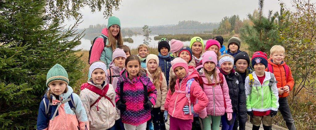 Gemeinsam mit der Klasse 2a ging es letzten Donnerstag in die Nicklheimer Filze. Unsere Moorführerin informierte uns anschaulich über die Pflanzen- und Tierwelt im Moor und wanderte mit uns auf schmalen Pfaden und Brücken durchs Moor. Ein Höhepunkt war dabei der Besuch des “Grünen Klassenzimmers” mit vielen Tierpräparaten. Ein tolles Erlebnis! Danke an die Eltern, die uns begleiten konnten.